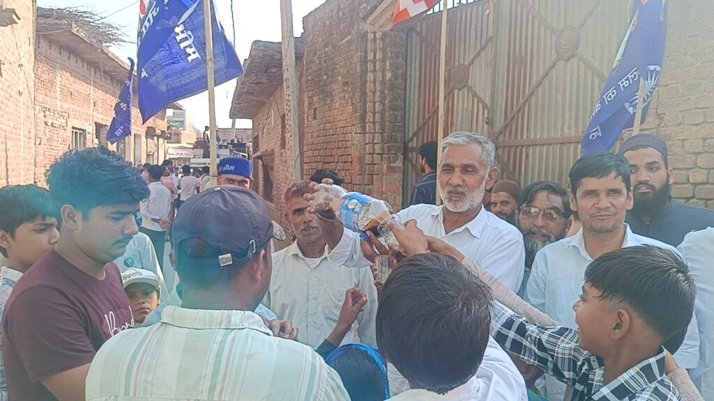 वहीं ग्राम प्रधान पद प्रत्याशी गुलाम रब्बानी ने शोभायात्रा पर फूलों की बारिश कर स्वागत किया और सभी उपस्थित लोगों को कोल्ड ड्रिंक वितरित कर आपसी एकता और भाईचारे का संदेश दिया। इस मौके पर मोहम्मद अतीक, दिलशाद नेता जी, सरफराज आलम, अशरफ भाई, जुल्फिकार सुनार, शमशाद ठेकेदार, हाजी जुल्फिकार, साजिद, मुस्तफा, मिंजार, जुबैर सहित कई गणमान्य लोग मौजूद रहे। कार्यक्रम के दौरान सुरक्षा व्यवस्था को लेकर चौकी प्रभारी राजनाथ सिंह पुलिस बल के साथ मौके पर तैनात रहे। उनकी निगरानी में पूरी शोभायात्रा शांतिपूर्ण ढंग से संपन्न हुई।